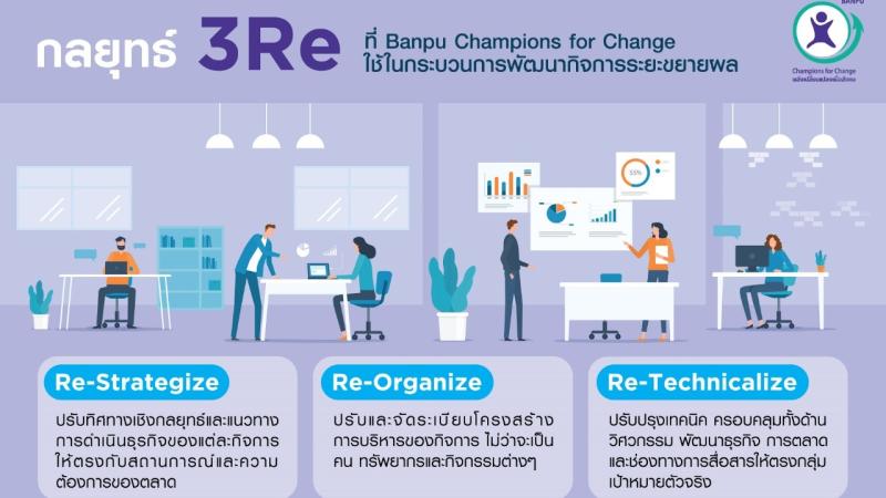 กลยุทธ์ 3Re ที่โครงการ BC4C นำมาใช้ในกระบวนการพัฒนากิจการระยะขยายผลประกอบด้วย