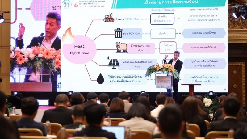 นายวัฒนพงษ์ ได้กล่าวถึงแผน AEDP 2024 ที่ให้ความสำคัญกับการส่งเสริมการผลิตและการใช้พลังงานทดแทนและพลังงานทางเลือกตามศักยภาพที่มีอยู่ในประเทศด้วยเทคโนโลยีและราคาที่เหมาะสม ควบคู่ไปกับการพิจารณาถึงความสอดคล้องกับทิศทางพลังงานโลกที่มุ่งใช้พลังงานสะอาด และการบรรลุสู่เป้าหมายความเป็นกลางทางคาร์บอนของประเทศ โดย AEDP ฉบับนี้ กำหนดเป้าหมายที่จะเพิ่มสัดส่วนการใช้พลังงานทดแทนและพลังงานทางเลือกร้อยละ 36 ของการใช้พลังงานขั้นสุดท้าย ณ ปี พ.ศ. 2580 โดยมีแนวทางการขับเคลื่อน อาทิ ส่งเสริมการรับซื้อไฟฟ้าจากพลังงานทดแทน ส่งเสริมการผลิตไฟฟ้าจากพลังงานทดแทนด้วยมาตรการทางภาษี ส่งเสริมการบริหารจัดการ จัดเก็บ และรวบรวมเชื้อเพลิงจากพลังงานทดแทนอย่างเป็นระบบ ส่งเสริมการแปรรูปเชื้อเพลิงทดแทนเพื่อเป็นเชื้อเพลิงหลักหรือเชื้อเพลิงร่วม ส่งเสริมการผลิตและใช้พลังงานรูปแบบใหม่ ได้แก่ เชื้อเพลิงไฮโดรเจน และเชื้อเพลิงอากาศยานยั่งยืน ส่งเสริมผู้ประกอบการเข้าถึงแหล่งเงินทุนสีเขียว เป็นต้น