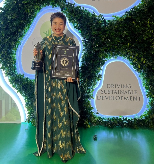 นางกลอยตา ณ ถลาง รองกรรมการผู้จัดการใหญ่ งานบริหารความยั่งยืนและสื่อสารองค์กร บริษัท บางจาก คอร์ปอเรชั่น จำกัด (มหาชน) และประธาน Carbon Markets Club รับรางวัล Asia Responsible Awards (AREA) 2024 สาขา Green Leadership จากบทบาทของ Carbon Markets Club ในการร่วมขับเคลื่อนการเปลี่ยนผ่านพลังงานของไทยสู่สังคมคาร์บอนต่ำ และรางวัลเกียรติคุณ Emblem of Sustainability ระดับ Silver จากความโดดเด่นในด้านความรับผิดชอบต่อสังคมและสิ่งแวดล้อมในการดำเนินงานและโครงการต่าง ๆ ของบางจากฯ ที่ทำให้ได้รางวัล AREA มา 7 ครั้ง ในงานประกาศรางวัล Asia Responsible Enterprise Awards ครั้งที่ 15 ณ เมืองโฮจิมินห์ สาธารณรัฐสังคมนิยมเวียดนาม จัดโดย Enterprise Asia องค์กรไม่แสวงผลกำไรที่ส่งเสริมและพัฒนาศักยภาพธุรกิจที่รับผิดชอบต่อสังคมและสิ่งแวดล้อมในภูมิภาคเอเชีย