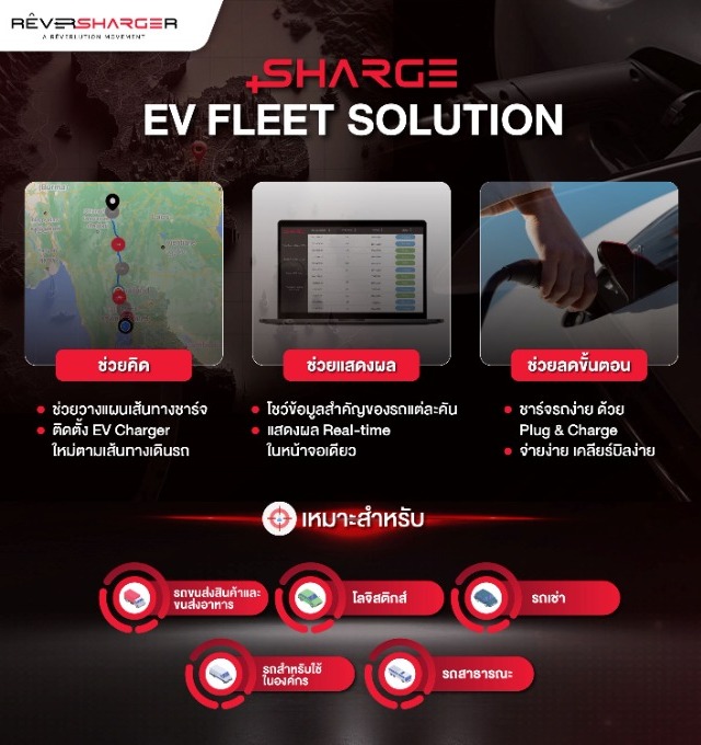 SHARGE เปิดตัว “EV Fleet Solutions” โซลูชันดูแลรถองค์กรและรถเชิงพาณิชย์แบบครบวงจรครั้งแรกในไทย! ช่วยให้องค์กรธุรกิจเปลี่ยนผ่านสู่การใช้รถ EV ได้ง่ายขึ้น ชู 3 บริการหลัก “ช่วยคิด” ให้คำปรึกษา วางแผนเส้นทางการชาร์จ พร้อมติดตั้ง EV Charger ใหม่ให้สอดคล้องเส้นทางเดินรถ “ช่วยแสดงผล” รวบรวมทุกข้อมูลสำคัญของรถแต่ละคันในพอร์ต แสดงผล Real-time ในหน้าจอเดียว “ช่วยลดขั้นตอน” นำเทคโนโลยียกระดับให้ชาร์จรถง่าย จ่ายเงินง่าย เคลียร์บิลง่าย บริหารง่าย เจาะกลุ่มองค์กรที่ใช้ฟลีท อาทิ รถขนส่งสินค้า รถขนส่งอาหาร รถองค์กร รถประจำตำแหน่งผู้บริหาร รถเช่า แท็กซี่ รถบัส เตรียมต่อยอดระบบคำนวณคาร์บอนเครดิต ตอบโจทย์องค์กรที่มุ่ง ESG ขับเคลื่อนสังคมคาร์บอนต่ำ-ลดต้นทุนพลังงาน-รับสิทธิประโยชน์ทางภาษี