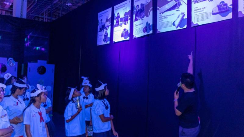 นายชยณัฐ สมบัติพิบูลย์ นักเรียนชั้นมัธยมศึกษาปีที่ 6 โรงเรียนขนอมพิทยาคม กล่าวว่า “เข้าร่วมงานวิทยาศาสตร์ของศูนย์เรียนรู้ฯ เป็นประจำทุกปี ปีนี้ชอบนิทรรศการโซนพิเศษ Glow in the Dark เพราะมีความแปลกใหม่ และได้เรียนรู้เรื่องการคิดค้นนวัตกรรม เช่น พลังงานทดแทนที่ช่วยลดปัญหาโลกเดือด ซึ่งเป็นปัญหาสำคัญที่สุดของโลกในปัจจุบัน และเด็ก ๆ ก็มีส่วนช่วยแก้ไขปัญหานี้ได้ มีความประทับใจแนวคิดเรื่องเครื่องเก็บขยะพลังงานแสงอาทิตย์ในทะเลที่ทำงานได้ตลอดเวลา ที่มาจากเยาวชนนวัตกร อยากชวนคนที่ยังไม่เคยมางานวิทยาศาสตร์ของศูนย์เรียนรู้ฯ ให้มาสัมผัสด้วยตัวเอง คนที่มาอาจจะได้รับแรงบันดาลใจ โดยเฉพาะแนวคิดใหม่ ๆ ที่ช่วยลดโลกเดือด และเติบโตไปเป็นวิศวกรที่คิดค้นนวัตกรรมในอนาคต”