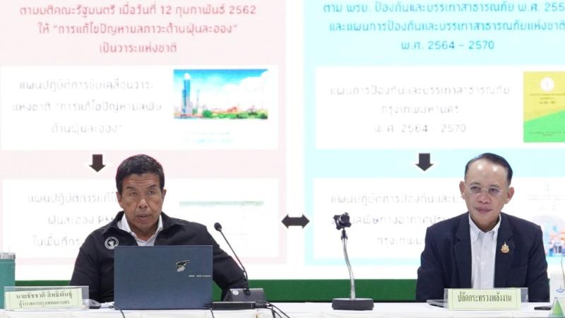 นายประเสริฐ สินสุขประเสริฐ ปลัดกระทรวงพลังงาน ได้เข้าร่วมงานแถลงข่าวร่วมกับ นายชัชชาติ สิทธิพันธุ์ ผู้ว่าราชการกรุงเทพมหานคร พร้อมด้วยผู้อำนวยการกองจัดการคุณภาพอากาศและเสียง กรมควบคุมมลพิษ สหพันธ์การขนส่งทางบกแห่งประเทศไทย แถลงความร่วมมือในการลดฝุ่นละออง PM 2.5 ภายหลังการประชุมเตรียมมาตรการการป้องกันและแก้ไขปัญหาฝุ่นละอองขนาดเล็กในพื้นที่กรุงเทพมหานครปี 2568