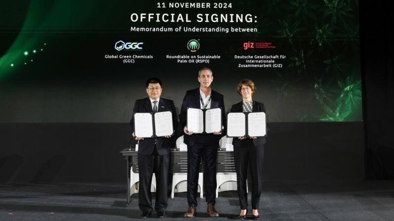 บริษัท โกลบอลกรีนเคมิคอล จำกัด (มหาชน) หรือ GGC จับมือองค์กรเจรจาระหว่างประเทศว่าด้วยปาล์มน้ำมันยั่งยืน Roundtable on Sustainable Palm Oil (RSPO) และ องค์กรความร่วมมือระหว่างประเทศของเยอรมัน (GIZ) ประจำประเทศไทย พร้อมกลุ่มเครือข่ายวิสาหกิจชุมชนผู้ปลูกปาล์มน้ำมัน และโรงสกัดปาล์มน้ำมัน ผลักดันขยายความร่วมมือยกระดับการผลิตปาล์มน้ำมันอย่างยั่งยืนตลอดทั้งห่วงโซ่อุปทานของประเทศไทย เพื่อเป้าหมายให้เกษตรกรขายผลิตภัณฑ์ปาล์มน้ำมันได้ราคาที่ดีอย่างยั่งยืน