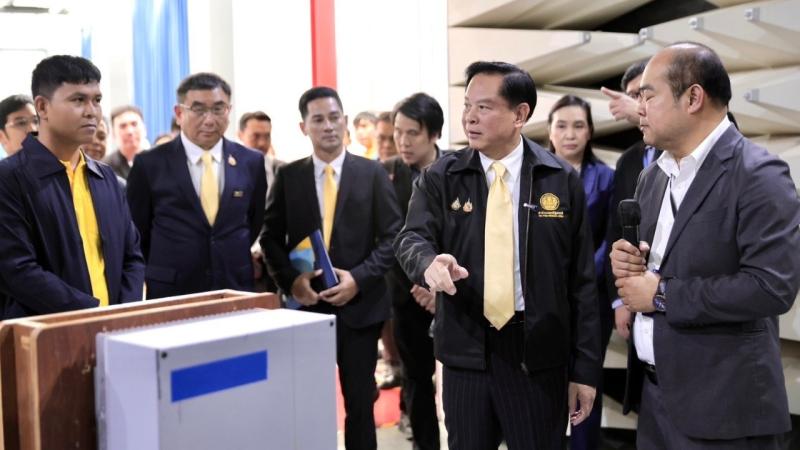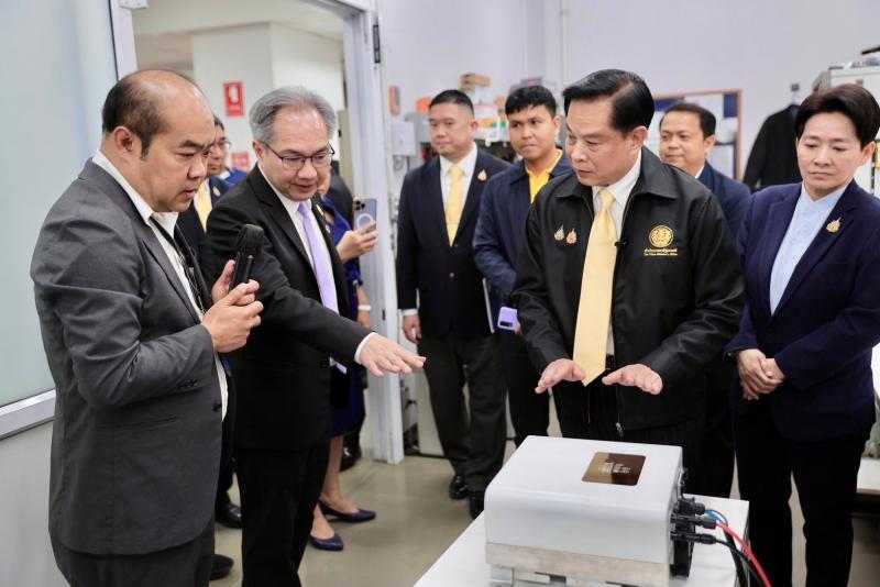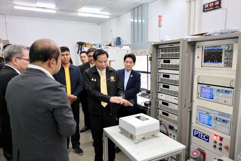 เมื่อวันที่ 20 พฤศจิกายน 2567 ที่ผ่านมา นายพีระพันธุ์ สาลีรัฐวิภาค รองนายกรัฐมนตรี และรัฐมนตรีว่าการกระทรวงพลังงาน ได้เดินทางไปตรวจราชการ ณ ศูนย์ทดสอบผลิตภัณฑ์ไฟฟ้าและอิเล็กทรอนิกส์ (PTEC) สำนักงานพัฒนาวิทยาศาสตร์และเทคโนโลยีแห่งชาติ (สวทช.) อุทยานวิทยาศาสตร์ประเทศไทย อำเภอคลองหลวง จังหวัดปทุมธานี เพื่อเยี่ยมชมการทดสอบเครื่อง Inverter ซึ่งเป็นอุปกรณ์หลักของระบบผลิตไฟฟ้าจากพลังงานแสงอาทิตย์ ที่เป็นผลงานการออกแบบของ นายทวีชัย ไกรดวง หรือ ครูน้อย พร้อมเยี่ยมชมห้องปฏิบัติการทดสอบคลื่นแม่เหล็กไฟฟ้า (EMC) และห้องปฏิบัติการทดสอบแบตเตอรี่ โดยมีคณะผู้บริหาร สวทช.ให้การต้อนรับ