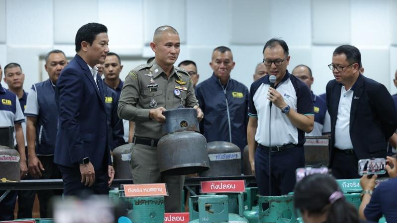 CIB ร่วมกับ OR แถลงผลปฏิบัติการทลายเครือข่ายผลิตถังก๊าซปลอมรายใหญ่ ยึดของกลางถังก๊าซปลอมและไม่ได้มาตรฐานกว่า 1,500 ใบ รวมมูลค่ากว่า 4 ล้านบาท พร้อมเดินหน้าปราบปรามผู้กระทำผิดทั่วประเทศ