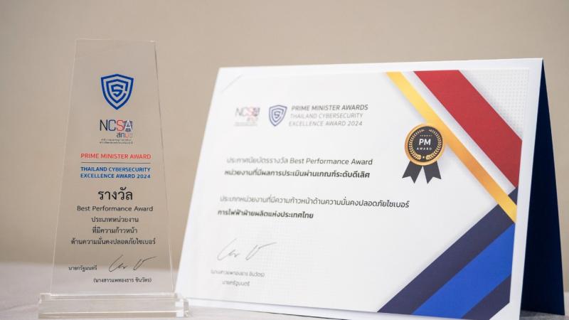 กฟผ. รับรางวัล Best Performance Award ประเภท หน่วยงานที่มีความก้าวหน้าด้านความมั่นคงปลอดภัยไซเบอร์ ในงาน Prime Minister Award: Thailand Cybersecurity Excellence Awards ประจำปี 2024 สะท้อนความมุ่งมั่น ในการพัฒนามาตรฐานความมั่นคงไซเบอร์อย่างต่อเนื่อง และนำเทคโนโลยีทันสมัยป้องกันและตอบสนองต่อภัยคุกคามทางไซเบอร์