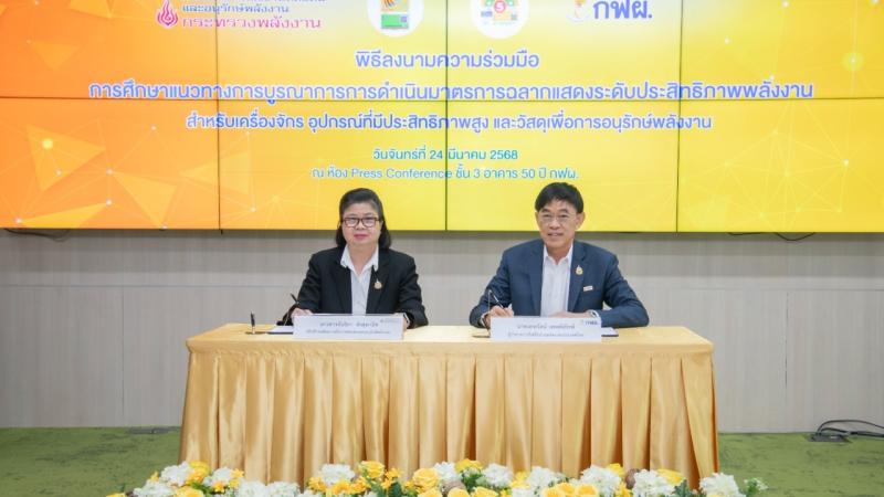 นางสาวนันธิกา ทังสุพานิช อธิบดี พพ. เผยว่า จากสถานการณ์ด้านพลังงานในปัจจุบันที่มีความเปลี่ยนแปลงอย่างรวดเร็ว การเพิ่มประสิทธิ ภาพการใช้พลังงานจึงเป็นภารกิจสำคัญของภาครัฐและทุกภาคส่วน การดำเนินมาตรการฉลากแสดงระดับประสิทธิภาพพลังงาน ถือเป็นกลไกหนึ่งที่จะช่วยกระตุ้นให้เกิดการเลือกใช้อุปกรณ์ วัสดุ และเครื่องจักรที่มีประสิทธิภาพสูง ซึ่งจะช่วยลดการใช้พลังงานโดยรวมของประเทศ และส่งเสริมให้เกิดการตระหนักรู้ในกลุ่มผู้บริโภคและภาคอุตสาหกรรม ดังนั้น ความร่วมมือระหว่าง กฟผ. กับ พพ. ในครั้งนี้ จึงเป็นก้าวสำคัญที่แสดงให้เห็นถึงพลังแห่งการบูรณาการร่วมกันของหน่วยงานภาครัฐที่มีภารกิจสอดคล้องกัน ในการขับเคลื่อนประเทศสู่การใช้พลังงานอย่างมีประสิทธิภาพ