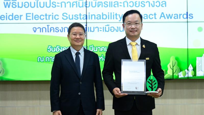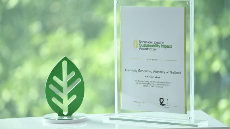 นายธวัชชัย สำราญวานิช รองผู้ว่าการยุทธศาสตร์ เป็นผู้แทนการไฟฟ้าฝ่ายผลิตแห่งประเทศไทย (กฟผ.) รับรางวัลชนะเลิศ Schneider Electric 2024 Sustainability Impact Awards ระดับประเทศ จากนายมงคล ตั้งศิริวิช ประธานบริษัท Schneider Electric กลุ่มคลัสเตอร์ประเทศไทย ลาว และเมียนมา ด้วยโครงการแม่เมาะเมืองน่าอยู่ สะท้อนความมุ่นมั่นการดำเนินงานด้านความยั่งยืน และการมุ่งสู่เป้าหมายการปล่อยก๊าซเรือนกระจกสุทธิเป็นศูนย์ (Net Zero) ณ ห้อง Press Conference อาคาร 50 ปี กฟผ. สำนักงานใหญ่ กฟผ. จ.นนทบุรี เมื่อวันที่ 25 มีนาคม 2568