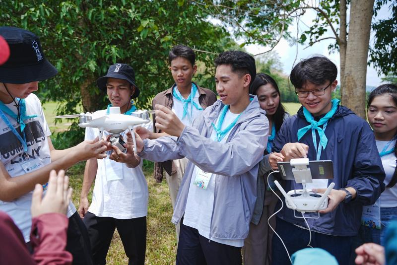 สำหรับปีนี้ทางโครงการฯ ปักหมุดกิจกรรมภาคสนามที่จังหวัดนครราชสีมาเพราะเป็นพื้นที่ที่เยาวชนสามารถเรียนรู้ความสำคัญของป่าไม้ในฐานะแหล่งดูดซับคาร์บอนในหลากหลายบริบท ทั้งในเขตพื้นที่อุทยานแห่งชาติเขาใหญ่ ป่าชุมชน พื้นที่เกษตรชุมชน รวมถึงการท่องเที่ยวเชิงอนุรักษ์ โดยเยาวชนทั้ง 50 คนมีภารกิจวางแปลงสำรวจการกักเก็บคาร์บอนในพื้นที่ป่าไม้ เพื่อศึกษาโครงสร้างสังคมพืช และฝึกฝนการประยุกต์ใช้นวัตกรรมไปวิเคราะห์ ดูแล และแก้ไขปัญหาสิ่งแวดล้อม ด้วยอากาศยานไร้คนขับ (Unmanned Aerial Vehicle - UAV) ซึ่งมีบทบาทสำคัญในหลากหลายด้าน เช่น การเฝ้าระวังป่าไม้และสัตว์ป่า การตรวจวัดมลภาวะ การติดตามการเปลี่ยนแปลงสภาพภูมิอากาศ และฟื้นฟูพื้นที่ป่า ไม่เพียงเท่านั้น เยาวชนยังได้เรียนรู้การจัดการท่องเที่ยวแบบชุมชนที่ “บ้านท่ามะปรางค์ – บ้านคลองเพล” ซึ่งใช้โมเดล “Local Low Carbon” และร่วมฝึกการทำเกษตรอินทรีย์แบบลดคาร์บอน สะท้อนให้เห็นว่า การเปลี่ยนแปลงระดับโลกเริ่มต้นได้จากชุมชนเล็กๆ