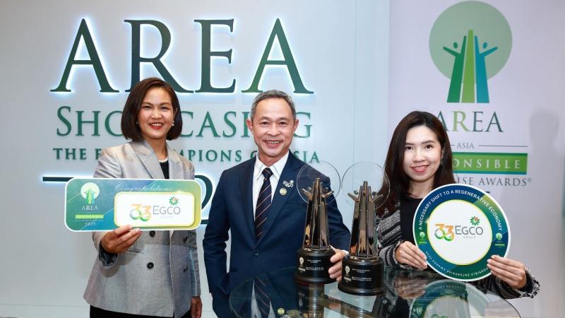 งานมอบรางวัล AREA จัดโดยสถาบัน Enterprise Asia องค์กรพัฒนาเอกชนชั้นนำที่ส่งเสริมศักยภาพผู้ประกอบการที่มีความโดดเด่นด้านความรับผิดชอบต่อสังคมและสิ่งแวดล้อมในภูมิภาคเอเชีย ทั้งนี้ EGCO Group ได้รับรางวัล AREA 2023 สาขา Investment in People จากโครงการหลักสูตรอบรมออนไลน์ “ครูพลังงาน” ที่เพิ่มศักยภาพครูให้ใช้สื่อดิจิทัลพัฒนาการเรียนการสอนด้านพลังงานอย่างมีประสิทธิภาพ และนำความรู้ไปใช้ในชีวิตประจำวัน รวมทั้งได้รับรางวัล AREA 2022 สาขา Green Leadership จากโครงการจัดการขยะภายในองค์กรตั้งแต่ต้นทาง ภายใต้ชื่อ “EGCO Ecosystem” เพื่อปลูกจิตสำนึกและส่งเสริมให้พนักงานรู้จักประเภทขยะและมีพฤติกรรมการคัดแยกขยะภายในองค์กรอย่างถูกต้อง ตลอดจนได้รับรางวัล AREA 2021 สาขา Investment in People จากโครงการ “ศูนย์เรียนรู้โรงไฟฟ้าขนอม” ซึ่งเป็นแหล่งเรียนรู้นอกห้องเรียนด้านไฟฟ้าและกระบวนการผลิตไฟฟ้า วิถีชีวิตชุมชนชาวขนอม การอยู่ร่วมกันอย่างเกื้อกูลของโรงไฟฟ้า ชุมชน และสิ่งแวดล้อม สำหรับเยาวชน ชุมชน และประชาชนทั่วไป