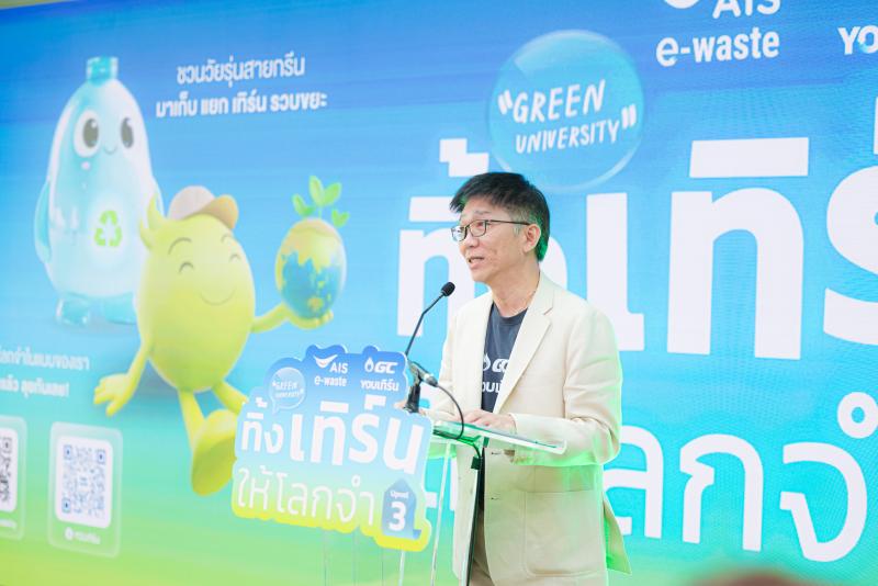 ก้าวสู่ปีที่ 3 ของความร่วมมือระหว่าง AIS และ GC ในการสานต่อพันธกิจด้านสิ่งแวดล้อมและความยั่งยืนกับโครงการ “Green University ทิ้ง เทิร์น ให้โลกจำ Upvel 3” ซึ่งจัดขึ้นต่อเนื่องเป็นปีที่ 3 เพื่อร่วมกันสร้างการตระหนักรู้ถึงปัญหาขยะที่ส่งผลกระทบต่อระบบนิเวศและสิ่งแวดล้อม โดยมุ่งสร้างเครือข่ายมหาวิทยาลัยสีเขียวผ่านกิจกรรมหลายรูปแบบที่กระตุ้นการมีส่วนร่วมของนิสิต-นักศึกษา บุคลากร รวมถึงชุมชนในพื้นที่ใกล้เคียง ให้สามารถบริหารจัดการขยะอิเล็กทรอนิกส์ (E-Waste) และขยะพลาสติกอย่างถูกวิธี โดยปีนี้ได้ขยายความร่วมมือสู่ 50 มหาวิทยาลัย พร้อมเปิดเวทีให้นิสิตและนักศึกษาได้แสดงพลังความคิดสร้างสรรค์อย่างเต็มที่ ชิงทุนการศึกษาและถ้วยรางวัล มูลค่ารวมกว่า 100,000 บาท เพื่อร่วมขับเคลื่อนการเปลี่ยนแปลงด้านสิ่งแวดล้อมอย่างเป็นรูปธรรม