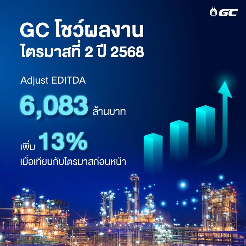 ในไตรมาสที่ 2 ปี 2568 GC มีรายได้จากการขายรวม 133,381 ล้านบาท ใกล้เคียงไตรมาสก่อนหน้า แม้อุตสาหกรรมยังคงผันผวน เศรษฐกิจโลกยังฟื้นตัวช้า และเผชิญแรงกดดันจากสถานการณ์ภูมิรัฐศาสตร์ โดยบริษัทฯ มี Adjusted EBITDA 6,083 ล้านบาท เพิ่มขึ้น 13% จากไตรมาสก่อน ตอกย้ำศักยภาพการดำเนินการตามกลยุทธ์เสริมประสิทธิภาพ เพิ่มรายได้และควบคุมค่าใช้จ่ายอย่างต่อเนื่อง