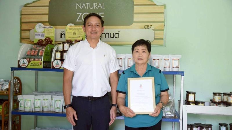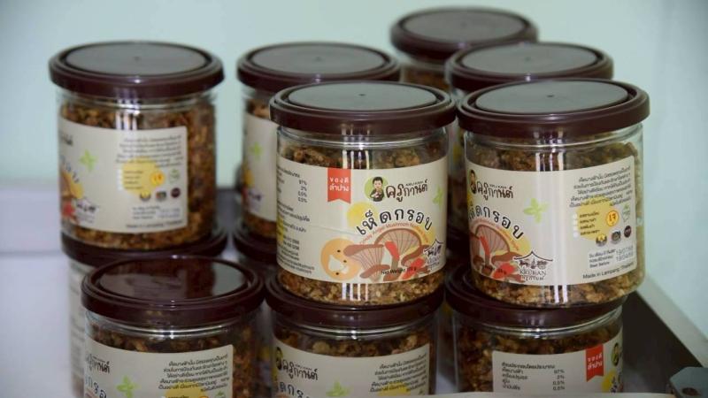 “ข้าวเกรียบเห็ด ตราครูกานต์” วิสาหกิจชุมชนเพาะแปรรูปเห็ดบ้านสวนแม่ทะ อำเภอแม่ทะ เกิดจากการรวมกลุ่มของแม่บ้านเกษตรกรที่เคยประสบปัญหาราคาเห็ดนางฟ้าตกต่ำ พลิกวิกฤตสู่การสร้างผลิตภัณฑ์แปรรูปมูลค่าสูง จุดเด่นคือ การใช้เห็ดนางฟ้าเกษตรอินทรีย์เป็นส่วนผสมหลัก ทำให้ได้ผลิตภัณฑ์โปรตีนสูง ถูกหลักอนามัย และไม่ใส่สารกันบูด โดยกลุ่มได้รับสนับสนุนการติดตั้งโรงอบแห้งพลังงานแสงอาทิตย์ เพื่ออบแห้งแผ่นข้าวเกรียบ ช่วยลดระยะเวลาและทำให้ผลิตภัณฑ์มีคุณภาพสม่ำเสมอ