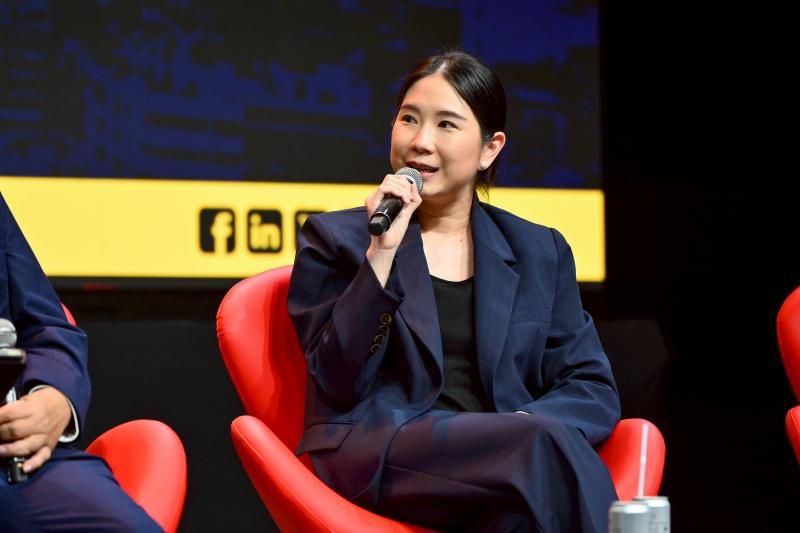 นางสาวปภาสิริ มหธราดล Head of Strategy and Project Management บริษัท บ้านปู เน็กซ์ จำกัด (ซ้ายสุด) ในหัวข้อ “แนวทางความร่วมมือในการลดคาร์บอนในภาคอุตสาหกรรม”
