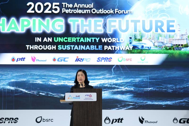 ภายในงาน ทีมนักวิเคราะห์สถานการณ์น้ำมัน กลุ่ม ปตท. (PRISM Experts) กล่าวถึงเศรษฐกิจโลกว่ากำลังเผชิญแรงกดดันสองด้าน ทั้งจากอุปสงค์น้ำมันที่อ่อนแอเพราะผลกระทบจากกำแพงภาษีของสหรัฐอเมริกาและการเปลี่ยนผ่านสู่พลังงานสะอาด ประกอบกับอุปทานจากประเทศกลุ่ม OPEC+ และ Non-OPEC+ ที่เพิ่มกำลังการผลิตอย่างต่อเนื่อง ทำให้อุปทานล้นตลาด จึงคาดการณ์ราคาน้ำมันดิบในปี 2569 จะเคลื่อนไหวในกรอบ 60 – 70 ดอลลาร์ต่อบาร์เรล ขณะเดียวกันผลกระทบจากการเปลี่ยนแปลงสภาพภูมิอากาศ (Climate Change) มีความรุนแรงขึ้น ทำให้ประเทศต่าง ๆ เร่งเปลี่ยนผ่านสู่ Net Zero โดยประเทศไทยปรับเป้าหมาย Net Zero เร็วขึ้น จากปี 2065 เป็นปี 2050 ตั้งเป้าพลังงานหมุนเวียนมากกว่า 50% มีการใช้ก๊าซธรรมชาติเป็นเชื้อเพลิงหลักในการเปลี่ยนผ่าน ควบคู่ไปกับการใช้ CCS ในการช่วยลดคาร์บอน ขณะที่น้ำมันยังคงมีบทบาทสำคัญต่อความมั่นคงด้านพลังงานของประเทศ พร้อมเดินหน้าผลักดันเทคโนโลยีใหม่ Hydrogen และ SMR มากยิ่งขึ้น โดยเฉพาะในภาคอุตสาหกรรม การขนส่ง และการผลิตไฟฟ้า ทั้งนี้ หัวใจสำคัญของการเปลี่ยนผ่านด้านพลังงาน คือการสร้างสมดุลระหว่างการใช้พลังงานฟอสซิลและการส่งเสริมพลังงานสะอาด เพื่อรักษาเสถียรภาพทางเศรษฐกิจและรองรับการเติบโตในอนาคต โดยประเทศไทยต้องเร่งดำเนินการใน 4 ด้านหลัก ได้แก่ การปรับปรุงกฎระเบียบให้ทันสมัยและใช้ได้จริง การผลักดันการลงทุนสีเขียว การเพิ่มประสิทธิภาพการใช้พลังงานเพื่อลดต้นทุน และการสร้างความร่วมมือจากทุกภาคส่วน