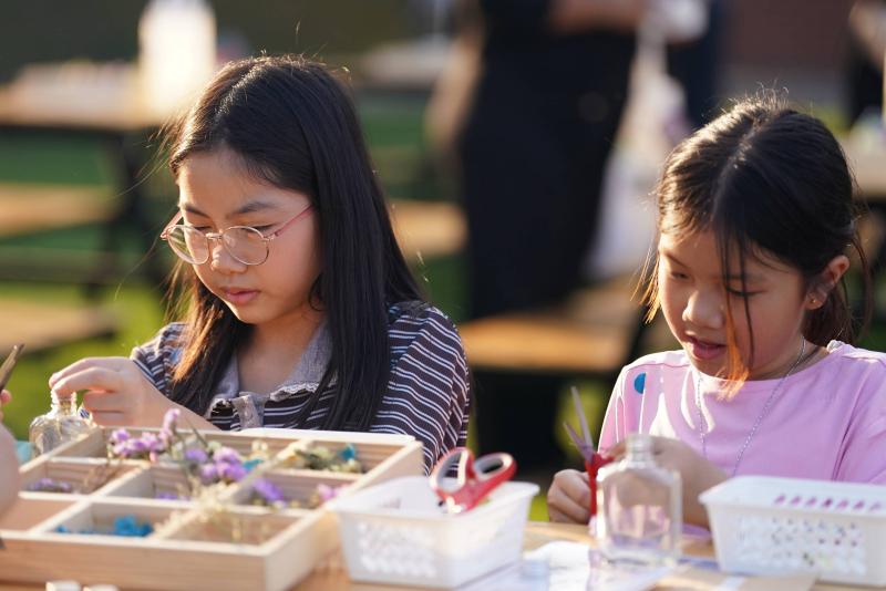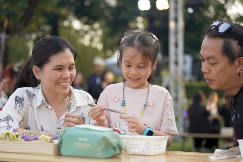 กิจกรรมเวิร์กช็อปของที่ระลึกทำมือ สัมผัสแรงบันดาลใจที่สืบสานจากพระราชปณิธาน ผ่านงานประดิษฐ์ที่ผสานความงดงามของดอกไม้ ผ้าไหมไทย และธรรมชาติอย่างเปี่ยมความหมาย อาทิ กิจกรรมประดิษฐ์น้ำหอมในขวดแบบก้านไม้หอม กิจกรรมประดิษฐ์พวงกุญแจจากผ้าไหมไทย กิจกรรมปลูกต้นไม้ในกระถางอิฐมวลเบา