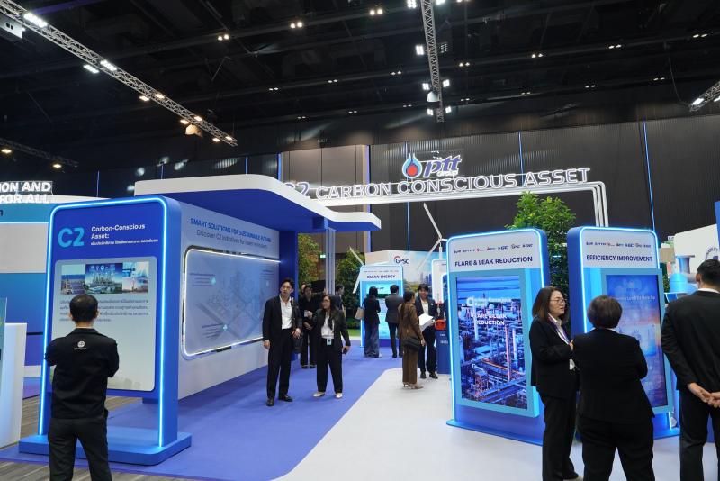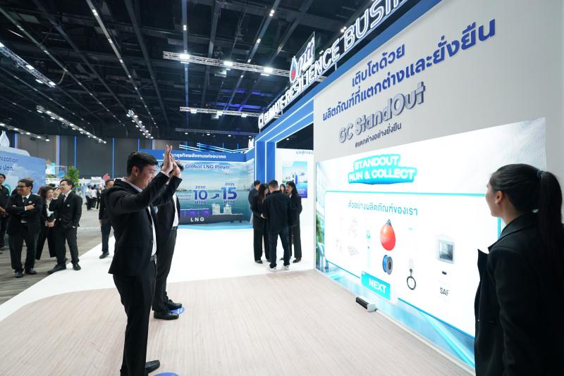 2) บูธนิทรรศการ ถ่ายทอดการดำเนินงานจริงของกลุ่ม ปตท. ที่มุ่งเน้นการสร้างความมั่นคงทางพลังงานและการเติบโตอย่างยั่งยืน พร้อมลดการปล่อยก๊าซเรือนกระจกอย่างสมดุล ผ่านการลงทุนในพลังงานและผลิตภัณฑ์คาร์บอนต่ำ การขับเคลื่อนโครงการและการพัฒนาโครงสร้างพื้นฐานใหม่เพื่อช่วยลดการปล่อยก๊าซเรือนกระจกให้ภาคส่วนต่าง ๆ ของประเทศไทย พร้อมด้วยกิจกรรมร่วมสนุกของกลุ่ม ปตท. อาทิ Harumiki Immersive Zone บอกเล่าเรื่องราวการเติบโตของสตรอว์เบอร์รี Harumiki และไม้เมืองหนาวจากพลังความเย็นจาก LNG รวมไปถึง Plastic Funtastic by GC เปลี่ยนพลาสติกใช้แล้วให้กลับมามีคุณค่าอย่างสร้างสรรค์