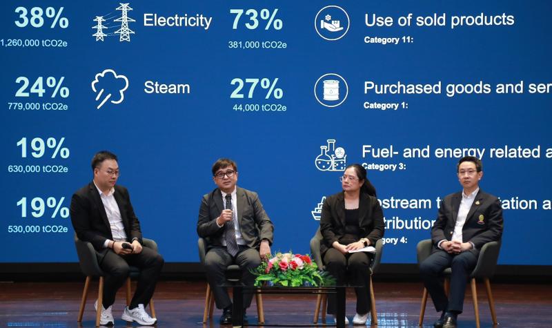 พร้อมด้วยการเสวนา “ก้าวสู่ธุรกิจคาร์บอนต่ำ: แนวปฏิบัติที่ดีที่สุดด้านการจัดการ Scope 3 ” โดยผู้ทรงคุณวุฒิ 3 ท่านได้แก่ นายจักรวาล เพิ่มญาณวรรธนะ ผู้ชำนาญการ แผนกลยุทธ์และความยั่งยืน บริษัท ไออาร์พีซี จำกัด (มหาชน) ศาสตราจารย์ ดร.พิสุทธิ์ เพียรมนกุล รองคณบดีคณะวิศวกรรมศาสตร์ จุฬาลงกรณ์มหาวิทยาลัย และ นางสาวนารีรัตน์ ธนะเกษม ผู้อำนวยการ สำนักพัฒนาศักยภาพและเผยแพร่องค์ความรู้ องค์การบริหารจัดการก๊าซ เรือนกระจก (องค์การมหาชน) ดำเนินการเสวนา โดย ดร.ณัฐวิญญ์ ชวเลิศพรศิยา ที่ปรึกษาสถาบันคาร์บอนเพื่อความยั่งยืน ซึ่งได้ร่วมกันถอดรหัสความท้าทาย โอกาส และแนวทางปฏิบัติที่เป็นเลิศในการบริหารจัดการ Scope 3 ตลอดห่วงโซ่อุปทาน เพื่อยกระดับขีดความสามารถในการแข่งขันของธุรกิจไทย