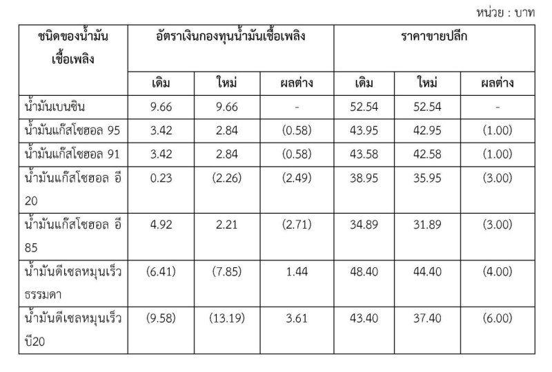 การปรับลดครั้งนี้ถือเป็นความตั้งใจของกระทรวงพลังงานที่ต้องการดูแลค่าขนส่งและค่าครองชีพของพี่น้องประชาชนในช่วงจังหวะที่ราคาน้ำมันโลกเอื้ออำนวย การดำเนินการในครั้งนี้ส่งผลให้กองทุนน้ำมันเชื้อเพลิงแบกรับค่าใช้จ่ายวันละ 589.15 ล้านบาท จากเดิมที่เคยมีรายจ่ายกว่าวันละ 1,200 ล้านบาท