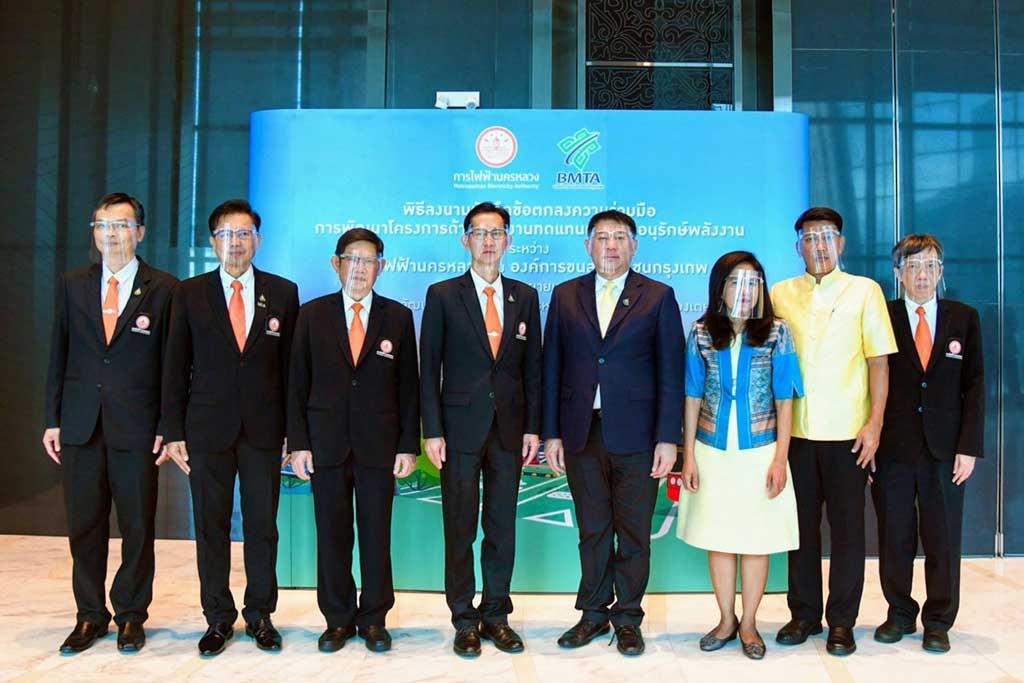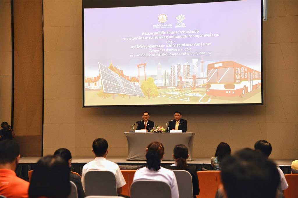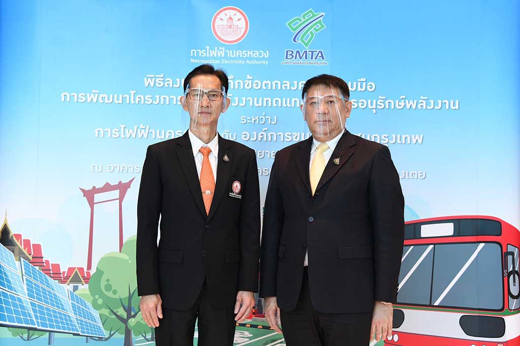 วันนี้ (21 กันยายน 2563) นายกีรพัฒน์ เจียมเศรษฐ์ ผู้ว่าการการไฟฟ้านครหลวง หรือ MEA และนายสันติ นำสินวิเชษฐชัย รองผู้ว่าการ MEA พร้อมด้วย นายสุระชัย เอี่ยมวชิรสกุล ผู้อำนวยการองค์การขนส่งมวลชนกรุงเทพ (ขสมก.) และนางพริ้มเพรา วงศ์สุทธิรัตน์ ผู้อำนวยการสำนักบริหารการเดินรถ ร่วมลงนามบันทึกข้อตกลงความร่วมมือ การพัฒนาโครงการด้านพลังงานทดแทนและการอนุรักษ์พลังงาน โดยร่วมกันพัฒนาการผลิตไฟฟ้าจากพลังงานหมุนเวียน การวิจัยและพัฒนาต้นแบบ EV Charging Station สำหรับรถเมล์ไฟฟ้าสาธารณะ ตลอดจนร่วมกันศึกษาวิจัยและพัฒนาเพื่อเพิ่มประสิทธิภาพการใช้พลังงานไฟฟ้าและปรับลดปริมาณการใช้ไฟฟ้า ณ อาคารวัฒนวิภาส การไฟฟ้านครหลวง สำนักงานใหญ่ คลองเตย