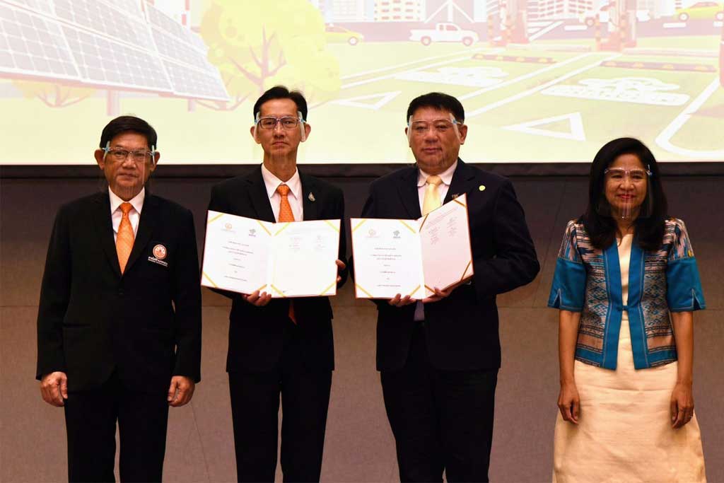 - การให้ความร่วมมือในการวิจัยและพัฒนาต้นแบบ EV Charging Station ที่ใช้พลังงานที่ผลิตได้จาก Solar Rooftop ในเขตการเดินรถของ ขสมก. และประยุกต์เทคโนโลยี IoT Smart Parking เพื่อบริหารจัดการระบบคิวของการใช้ EV Charging Station ให้มีประสิทธิภาพ