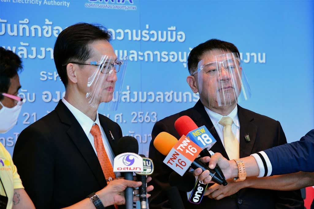 ผู้ว่าการ MEA เปิดเผยว่า MEA ในฐานะรัฐวิสาหกิจสังกัดกระทรวงมหาดไทย มีหน้าที่ในการจำหน่ายพลังงานไฟฟ้าในพื้นที่กรุงเทพมหานคร นนทบุรี และสมุทรปราการ โดยมุ่งมั่นพัฒนาระบบไฟฟ้าที่มั่นคงและมีประสิทธิภาพ วิจัยนำนวัตกรรมด้านพลังงานมาใช้ไปพร้อม ๆ กับการใส่ใจต่อสังคมและสิ่งแวดล้อมตามวิสัยทัศน์พลังงานเพื่อวิถีชีวิตเมืองมหานคร โดยเฉพาะอย่างยิ่งการใช้พลังงานทดแทนและการอนุรักษ์พลังงาน โดยที่ผ่านมา MEA มีการสร้างความร่วมมือกับหลากหลายหน่วยงานทั้งภาครัฐและเอกชนในการพัฒนาการใช้พลังงานทดแทนให้เกิดประโยชน์กับองค์กร หน่วยงาน และประเทศชาติอย่างต่อเนื่อง โดยในครั้งนี้ MEA ได้ลงนามบันทึกข้อตกลงความร่วมมือ การพัฒนาโครงการด้านพลังงานทดแทนและการอนุรักษ์พลังงาน กับ ขสมก. โดย MEA ได้สนับสนุนนวัตกรรมและให้ความร่วมมือในด้านต่าง ๆ เพื่อผลักดัน ขสมก. ให้เป็นต้นแบบองค์กรด้านพลังงานที่ยั่งยืน ได้แก่