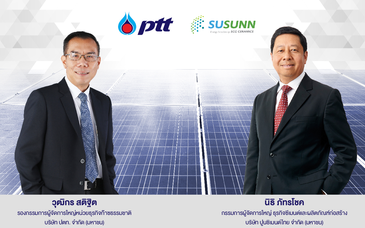 ความร่วมมือดังกล่าวเป็นการศึกษาความเป็นไปได้และพัฒนาการดำเนินธุรกิจโครงการระบบผลิตไฟฟ้าจากพลังงานแสงอาทิตย์ หรือ Solar Rooftop สำหรับโรงงานอุตสาหกรรมและอาคารสำนักงาน โดยใช้ความเชี่ยวชาญ ตลอดจนประสบการณ์ในการทำธุรกิจด้านการให้บริการแนะนำ ออกแบบ และติดตั้งระบบผลิตไฟฟ้าพลังงานแสงอาทิตย์ครบวงจรของ เอสซีจี เซรามิกส์ ภายใต้ แบรนด์ “SUSUNN” มาร่วมพัฒนาธุรกิจให้บริการระบบผลิตไฟฟ้าจากพลังงานแสงอาทิตย์ให้แก่ลูกค้าก๊าซธรรมชาติ กลุ่มโรงงานอุตสาหกรรมและผลิตไฟฟ้าใช้เองของ ปตท.