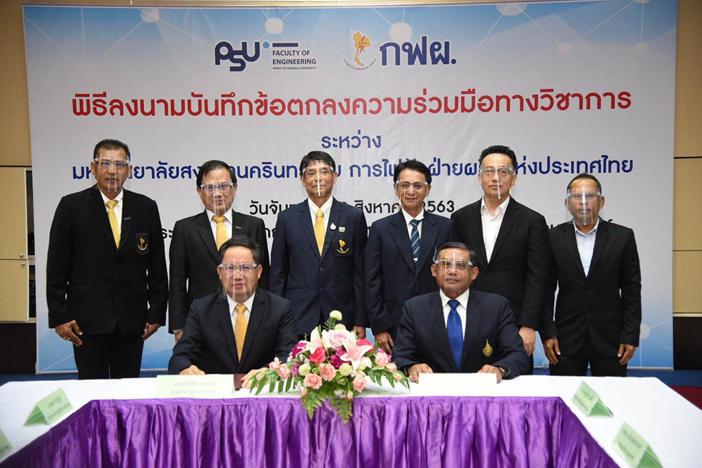 วันนี้ (10 สิงหาคม 2563) การไฟฟ้าฝ่ายผลิตแห่งประเทศไทย (กฟผ.) ร่วมกับ คณะวิศวกรรมศาสตร์ มหาวิทยาลัยสงขลานครินทร์ (ม.อ.) วิทยาเขตหาดใหญ่ ลงนามบันทึกข้อตกลงความร่วมมือ (MOU) ทางวิชาการ ครั้งที่ 3โดยมีนายเริงชัย คงทอง รองผู้ว่าการระบบส่ง กฟผ. และ ผศ.ดร.นิวัติ แก้วประดับ อธิการบดี ม.อ. เป็นผู้แทนการลงนาม เพื่อส่งเสริมการพัฒนาบุคลากรและเทคโนโลยีพลังงานไฟฟ้าของภาคใต้อย่างเป็นรูปธรรม ณ ห้องประชุมดงยาง 1 คณะวิศวกรรมศาสตร์ มหาวิทยาลัยสงขลานครินทร์ อ.หาดใหญ่ จ.สงขลา